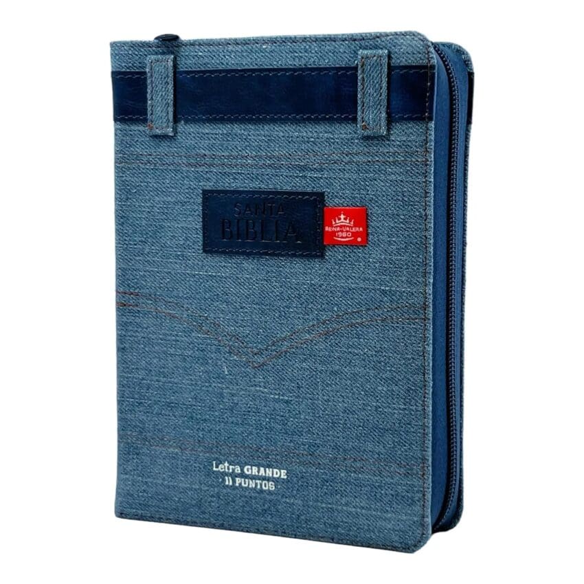 Reina Valera 1960  11 puntos Jean cinturón. La Biblia Reina Valera 1960 es una de las traducciones de la Biblia más reconocidas en el mundo de habla hispana, siendo la traducción clásica del pueblo evangélico. Colección Jean Letra grande 11 puntos con cierre. Biblia letra grande. Lee la Biblia y medita en ella día y noche.