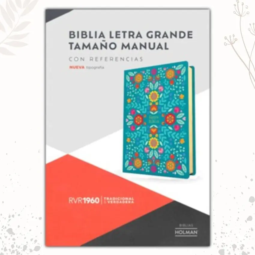 Biblia floreada azul con tamaño de letra de 12 puntos.