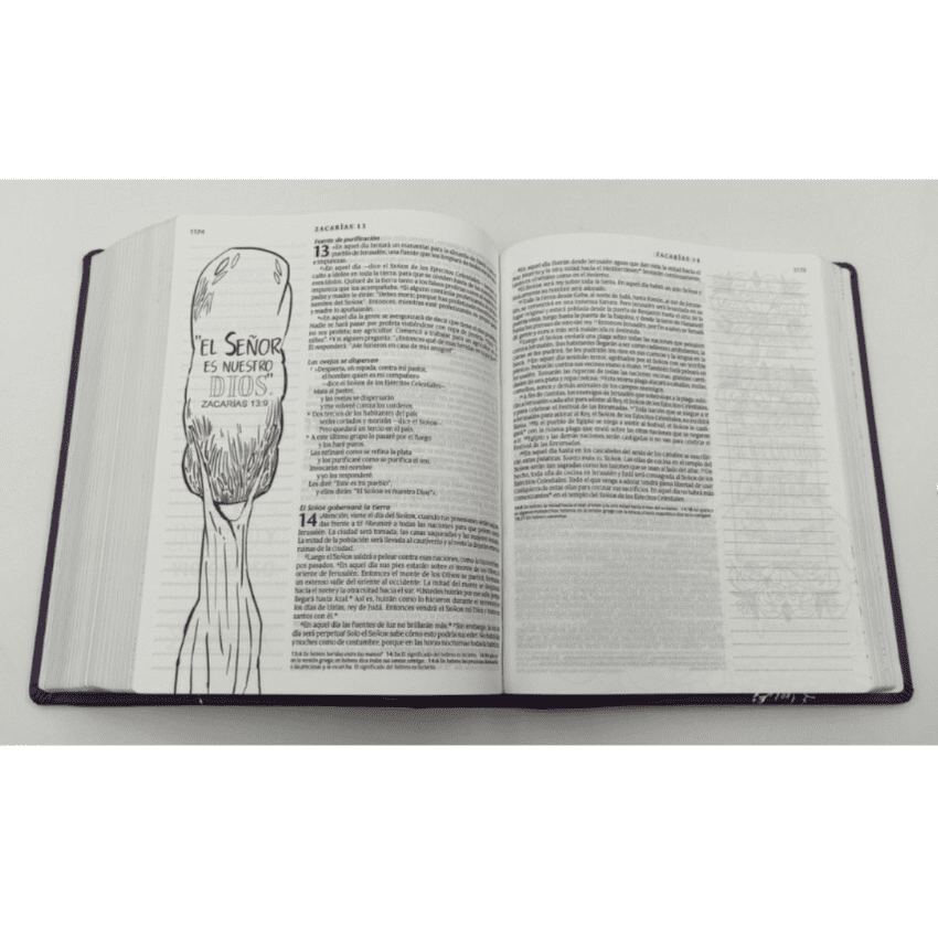 A lo largo de toda la Biblia hay ilustraciones de página completa y página parcial que dan la oportunidad de colorear versículos bíblicos para que la Biblia sea personalizada y única. Cada página tiene un margen de 5 centímetros de ancho con ilustraciones de las Escrituras en blanco y negro o un espacio con renglones claros para escribir notas y reflexiones personales o dibujar y crear. La Biblia Inspira tiene papel de Biblia de alta calidad con un tamaño de letra generoso de 8,25 que garantiza una legibilidad óptima.