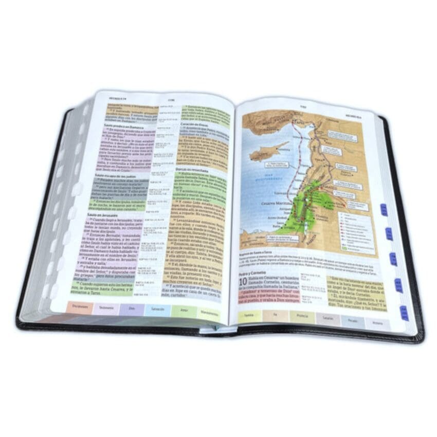 La Biblia de Estudio Arcoíris Reina Valera 1960 cuenta con un sistema único de «código de colores» que le permite al lector de manera fácil y rápida identificar 12 temas importantes en la Escritura: Dios, amor, discipulado, fe, pecado, Satanás, salvación, familia, testimonio, mandamientos, historia y profecía.