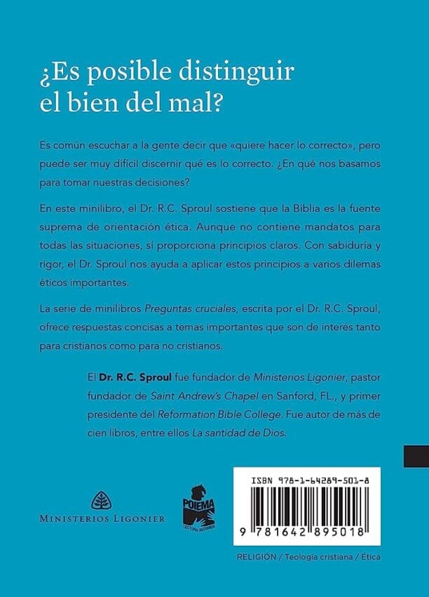 En este minilibro, el Dr. R.C. Sproul sostiene que la Biblia es la fuente suprema de orientación ética. Aunque no contiene mandatos para todas las situaciones, sí proporciona principios claros. Con sabiduría y rigor, el Dr. Sproul nos ayuda a aplicar estos principios a varios dilemas éticos importantes.