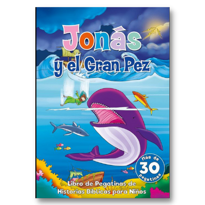 Disfruta la historia de Jonás y el gran pez, libro de pegatinas de historias Bíblicas para niños. Horas de entretenimiento bíblico y de mucha diversión para los niños