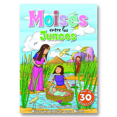 Disfruta la historia de Moisés entre los juncos, libro de pegatinas de historias Bíblicas para niños. Horas de entretenimiento bíblico y de mucha diversión para los niños