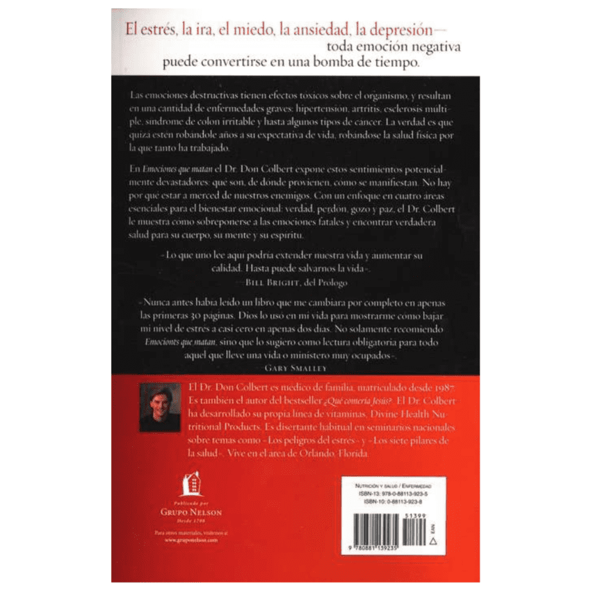 El doctor Colbert ofrece una definición clara de las emociones mortales: específico son, de dónde surge, cómo se manifiestan y sus efectos en el cuerpo humano, mediante la evidencia científica que apoya su posición y comparte sus consejos con respecto a la nutrición y el papel que ocupan para remover las toxinas físicas que inhiben una verdadera salud.