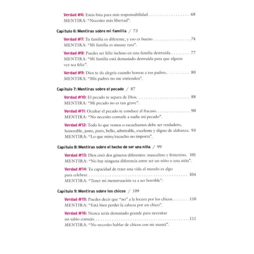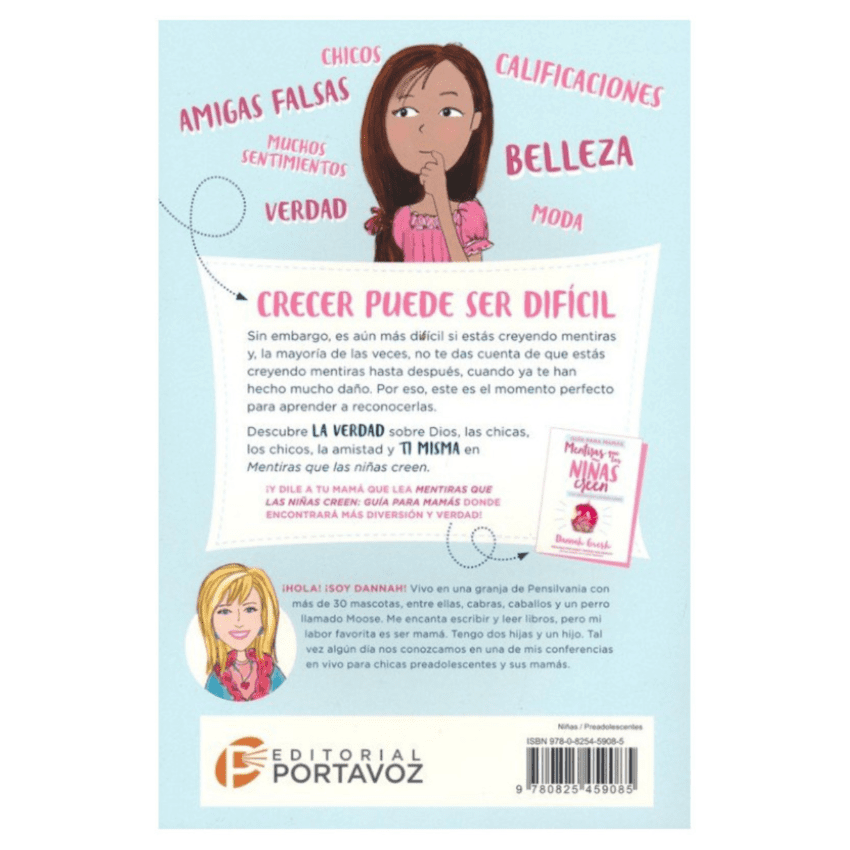 Las niñas de hoy se enfrentan a una serie de desafíos que nunca enfrentamos a su edad. Desde el aumento vertiginoso de las tasas de ansiedad hasta el acoso en las redes sociales, las mentiras del enemigo están en todas partes. ¿Cómo ayudas a la niña que amas a caminar en libertad? Equípala con la verdad. Dannah Gresh te trae Mentiras que las niñas creen. Este libro divertido y fácil de leer involucra a tu hija en las veinte verdades más importantes que necesita. Incluye divertidas secciones para que ella aprenda a resolver problemas y está repleta de sabiduría, cuestionarios, juegos, citas y gráficos que la ayudarán a absorber el mensaje. Mentiras que las niñas creen está diseñado para ayudar a tu hija a comprender completamente la Verdad para que pueda vivir de la manera que Dios quiso que ella viviera, ¡libre!