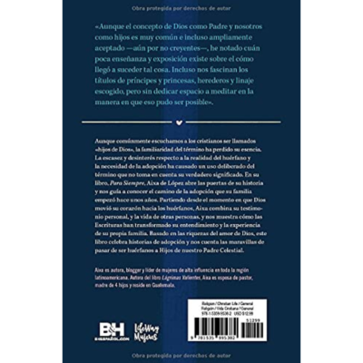 Hijos de Dios. Comúnmente escuchamos que este término se usa como sinónimo de cristianos, pero ¿entendemos las implicaciones de ser llamados hijos de Dios? En su nuevo libro, Para siempre, Aixa de López explica por qué podemos ser llamados Sus hijos y cómo servimos a un Padre asombroso, narra su historia de adopción, explica por qué podemos ser llamados Sus Hijos y cómo servir a nuestro Padre celestial.
