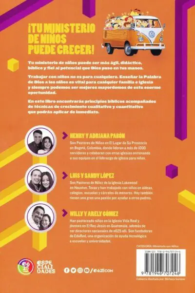 Todo ministerio de niños puede ser mejor y este libro trae técnicas probadas de crecimiento cualitativo y cuantitativo que toda iglesia puede aplicar. Los autores de este libro representan a algunos de los ministerios de niños de mayor crecimiento hoy en Hispanoamérica. El crecimiento del ministerio de niños, tanto en calidad como en cantidad no solo es necesario sino también posible. Este libro comparte gemas de gran valor para aquellos que desean que sus ministerios de niños no dejen de crecer y que toda su comunidad de fe pueda notar el poderoso efecto de contar con un ministerio de niños en expansión.